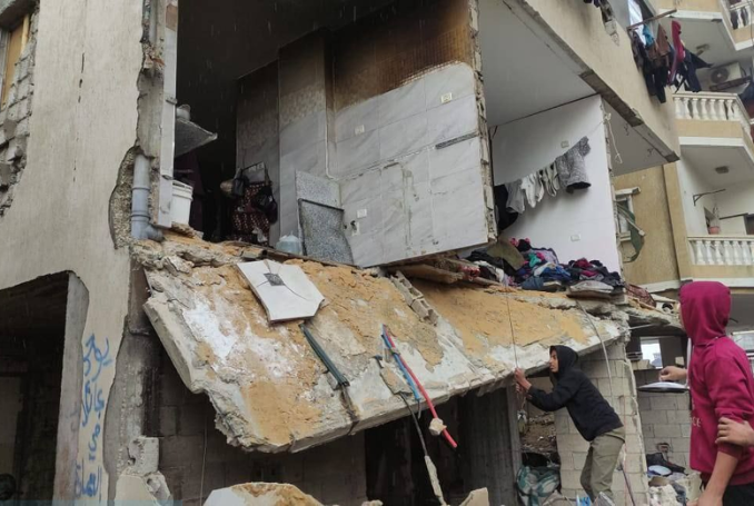 The authority warned of the dangers of further collapses of damaged and dilapidated buildings where displaced families have taken shelter, as a heavy storm batters the Strip, causing soil erosion and further cracking in walls and columns already damaged by shelling.